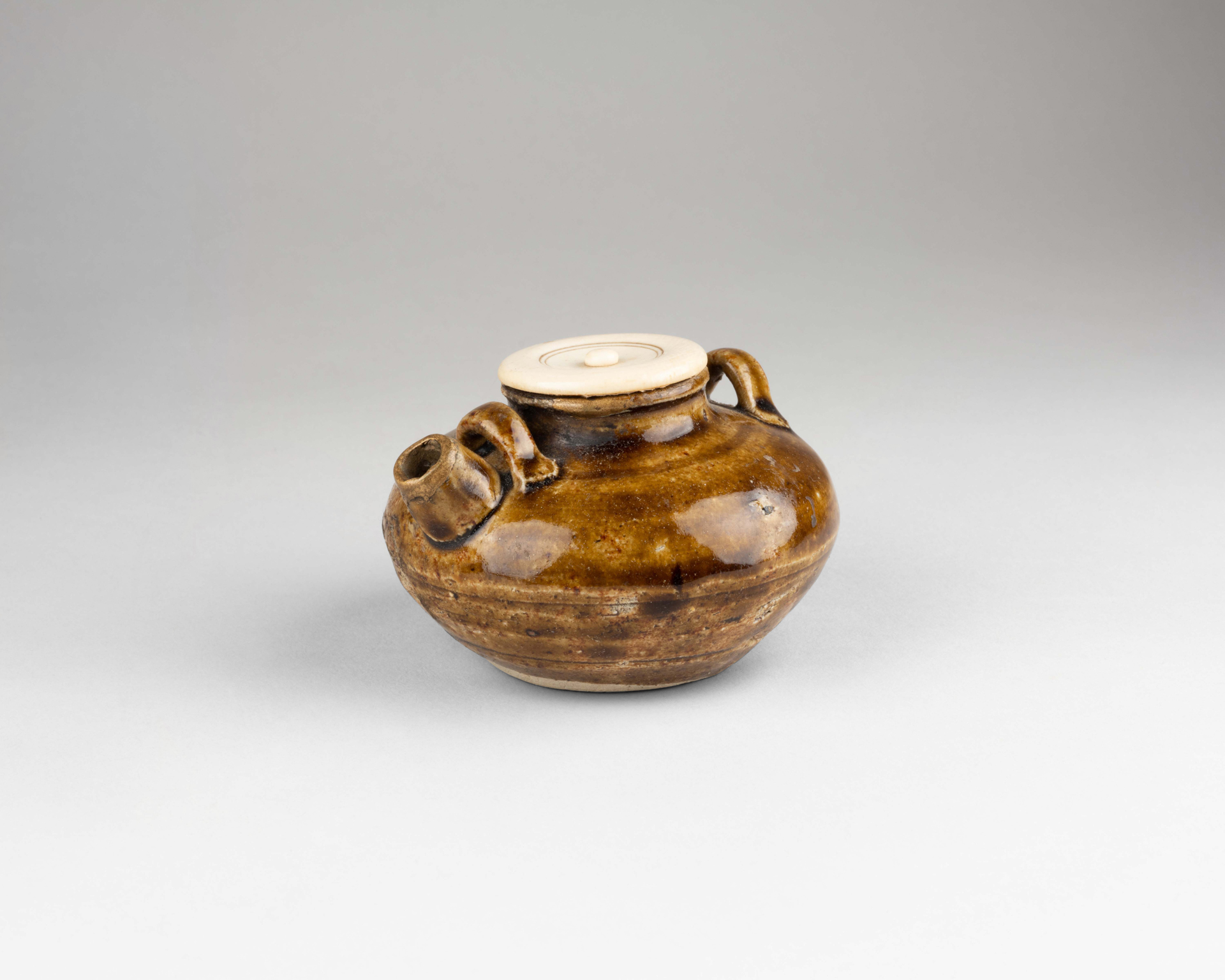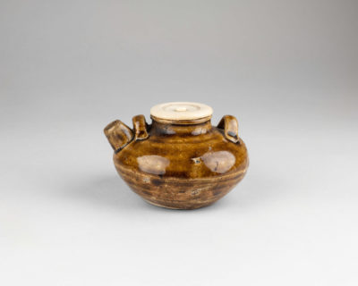 Ravissant petit modèle d’un brûle parfum miniature couvert, en agate sculptée, de forme tripode avec deux anses annelées, figurant des têtes d’éléphants. Chine – Premier tiers du XXe siècle H : 6,5 cm. Ancienne collection de sa Majesté Nam Phuong, dernière impératrice du Vietnam.