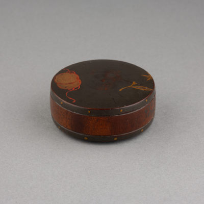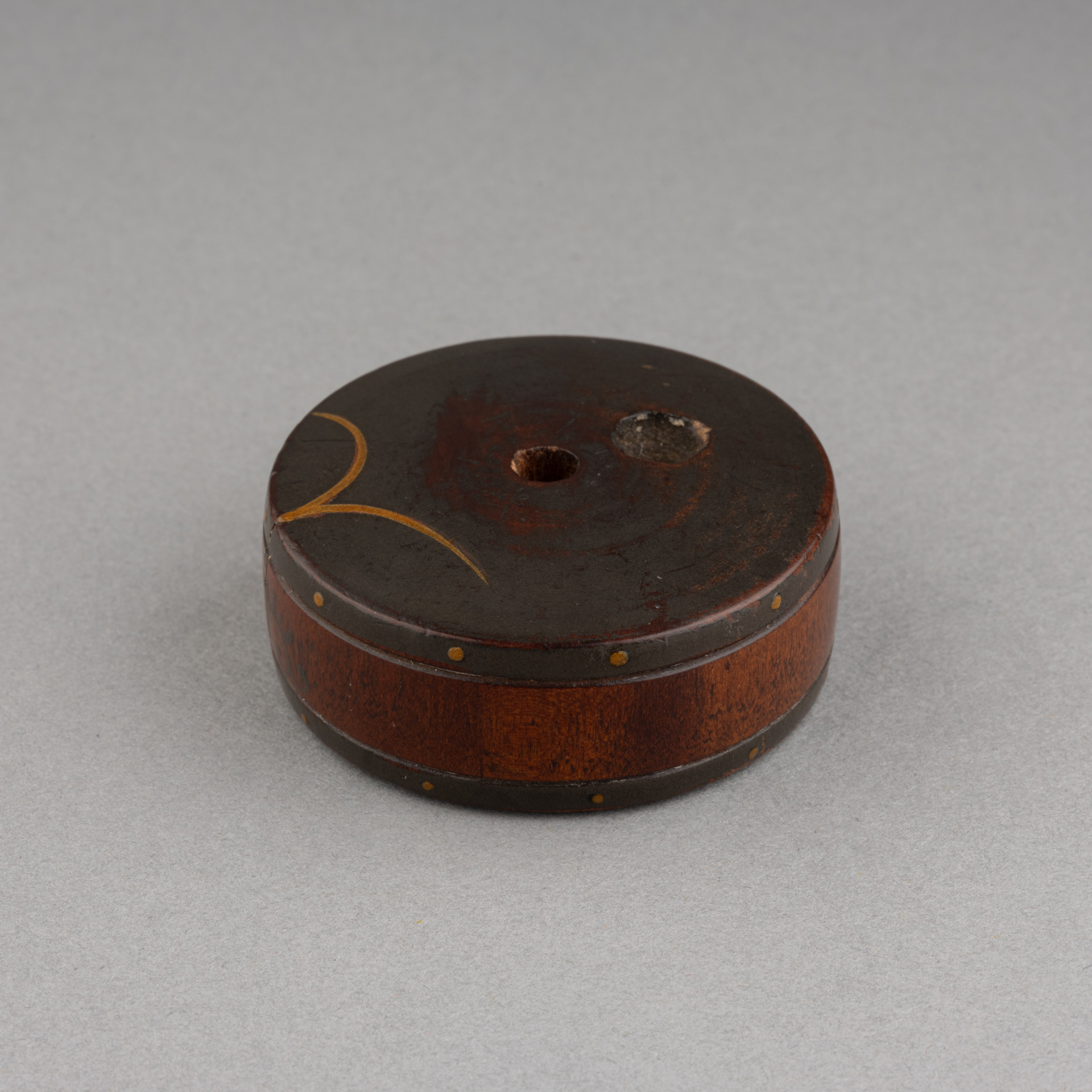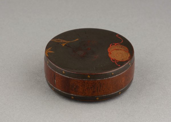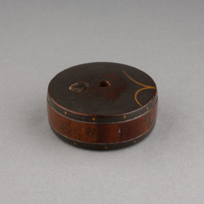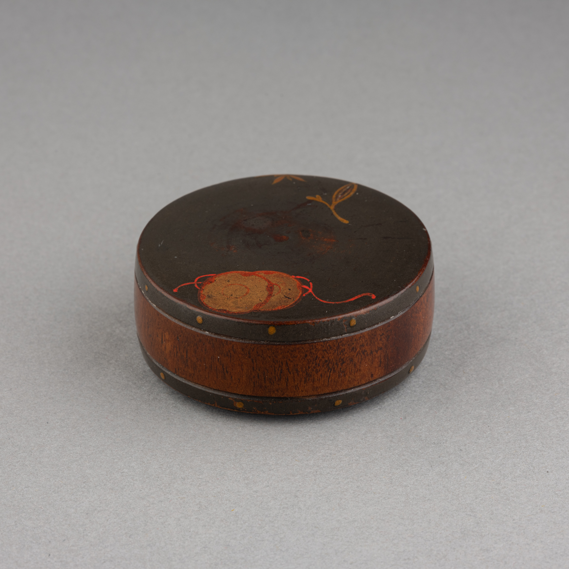 Netsuke – Tambour en bois et laque du Japon